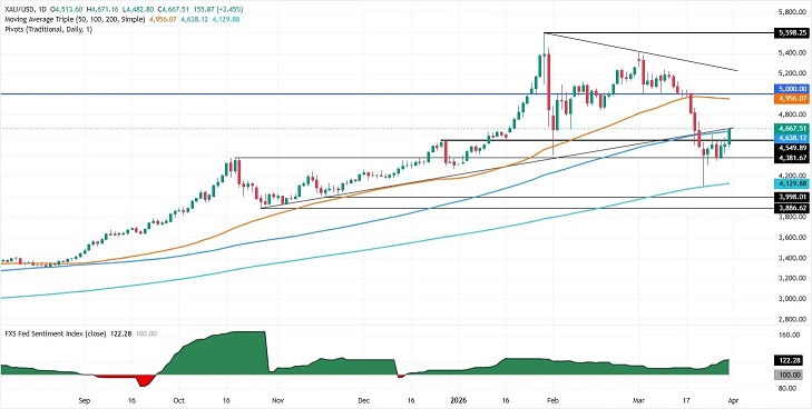 现货黄金周二收盘暴涨156.15好意思元,涨幅3.46%,报4666.83好意思元/盎司。
