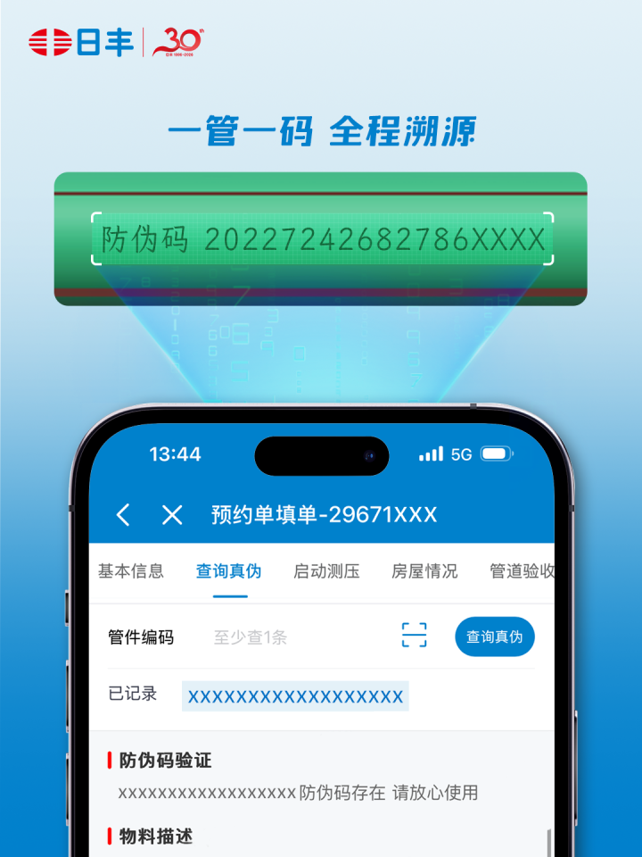 在日丰每年出产的数十亿米管谈上,每一件居品齐有一个唯一的识别编码。这个编码,让每个居品齐能精确溯源——它的原材料是哪一批次、什么时候在哪个车间出产、经由哪个工东谈主质检、通过哪个物流运输、发给了哪个经销商,乃至终末由哪位装配师父、装在了哪位耗尽者家中。这串编码,让每个居品齐有了不能伪造的“身份证”。