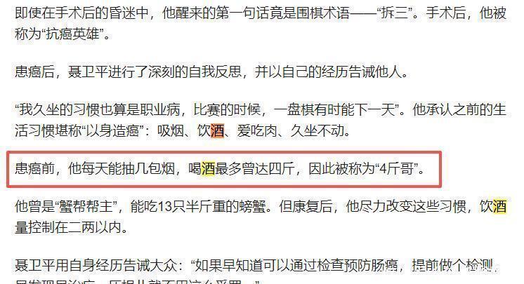 2026年1月14日,“棋圣”聂卫平也走了,他生前然而以“烟酒不离身”闻明,天天抽三包烟仍是成了风气,也曾还一次喝掉四斤白酒的记载呢。