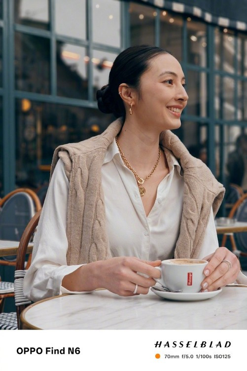 在东说念主像拍摄方面,OPPOFindN6还撑捏专科哈苏东说念主像模式,通过更当然的布景虚化、更精确的肤色规复以及更隆起的主体发达,进一步增强像片的高档感和氛围感。