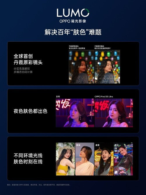 在夜景霓虹、室内夹杂光源、逆光东说念主像等传统手机影相容易出现偏色的场景中,丹霞镜头的加入,有望显耀改善肤色失真、画面发灰、颜色不准等问题。关于用户而言,这意味着拍东说念主像时肤色会愈加当然,拍好意思食时颜色更水灵,拍步地时档次也愈加丰富真正。
