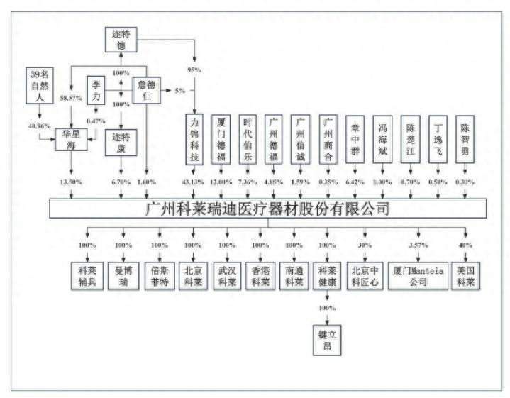 詹德仁、李力匹俦表决权近65%。科莱瑞迪控股推进是广州力锦科技投资有限包袱公司(力锦科技),抓股比例43.13%,推行落拓东谈主为詹德仁、李力匹俦,平直抓有1.6%的股份,同期通过力锦科技、华星海、迩特康曲折落拓公司63.33%的表决权,所有表决权64.93%。