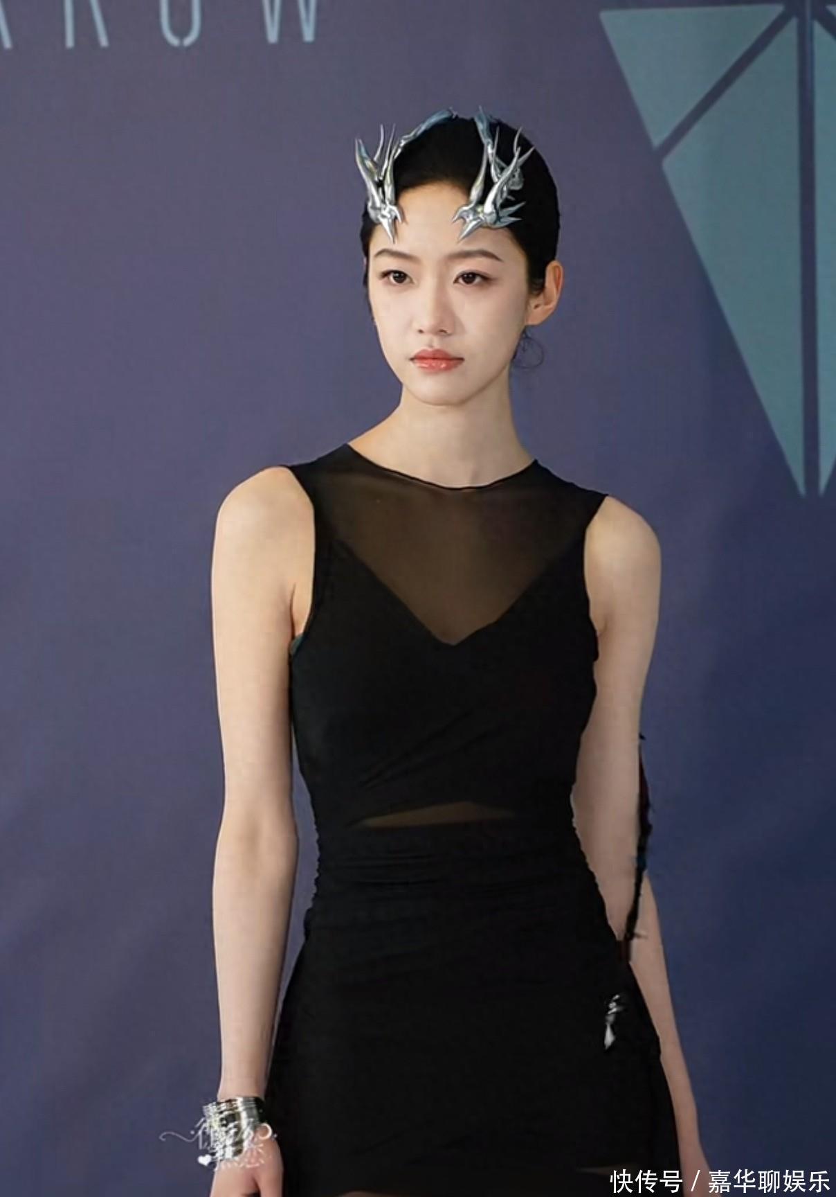 向涵之星轨状银色发饰搭配高马尾与纯黑露背长裙,发饰棱角筹办与流动钻光酿成"星河碎屑"视效,不知谈是不是念念仿妆小龙女,至极有科技感。