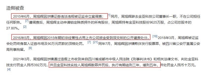 2015年,周旭辉所掌公司因涉嫌证券违法操作导致股价崩盘。
