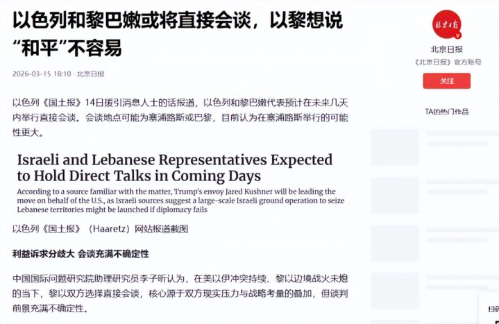 北京日报2026-3-15以色列和黎巴嫩或将胜利会谈杏彩官方网站,以黎念念说和平辞让易】