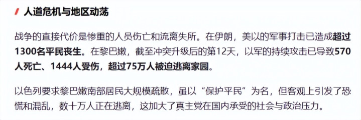 内塔尼亚胡发动对伊斩首举止后,无间的战争通常让以色列全球商酌纷繁,多量预备役东谈主员被迫员,稠密家庭面对亲东谈主隔离的厄运,国内的政事不合也越来越大,这齐所以色列的践诺逆境。