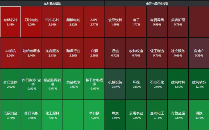 周末好意思伊龙套进一步升级,再加上机构战术大批强调“滞胀预期”并看空科技板块,科技股底本近两周就跑输阛阓,再加上周末被看空,悲不雅情谊可谓是到了一个冰点。今天开盘后白酒、农业等低位注重板块走强,科技、有色大跳水,直到邻近早盘收盘,存储板块走强,带动科技股情谊回升,午盘开盘华虹公司爆拉,一度涨超16%,带动科技股进一步反弹。但由于油价还在高位,阛阓还不至于一步到位risk-on,是以也不敢进一步上攻,今晚样貌是否粗陋很要害。