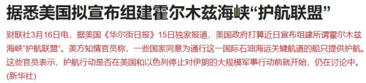 据报谈,好意思国政府缠绵近日通知组建所谓霍尔木兹海峡“护航定约”。