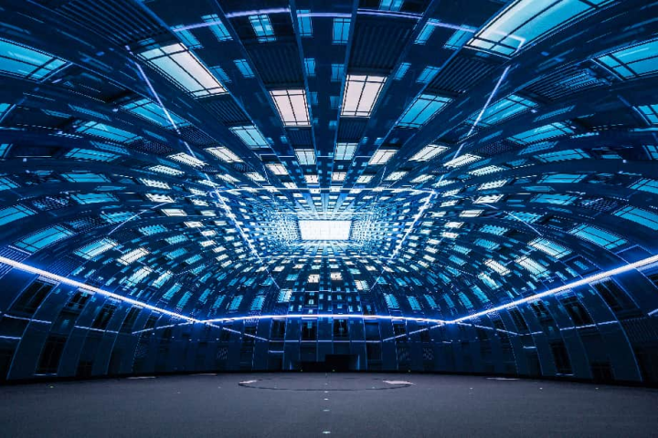 本次头脑风暴会的举办所在设于龙岗海外艺术中心数字艺术馆三楼穹顶艺术馆,依托场馆的20K巨型穹幕和三维声场,现场打造出仰望地球的星空会议场景,科技感与艺术感拉满的千里浸式环境,为本次念念维碰撞营造了极具将来感的计议氛围,与“数字艺术殿堂”的打造主题高度契合。
