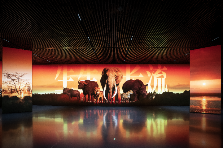 移步二楼灵动空间,嘉宾们不雅看了创作团队远赴非洲肯尼亚、坦桑尼亚实地拍摄的数字艺术极品《生助长流》。作品以非洲草原动物大迁移为中枢,通过千里浸式影像、光影幻化与空间化呈现,铺展出震荡东谈主心的当然生命图景,解说生命与当然的共生共荣,让嘉宾们深远感受数字艺术对当然生命主题的调动抒发,体会数字艺术从“被不雅看”到“被过问”的全新变革。